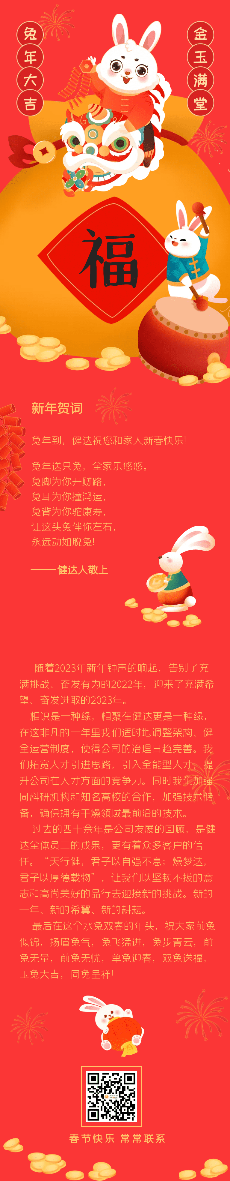 祥虎辭舊歲,玉兔迎新春!隨著2023年新年鐘聲的響起,告別了充滿挑戰、奮發有為的2022年,迎來了充滿希望、奮發進取的2023年。