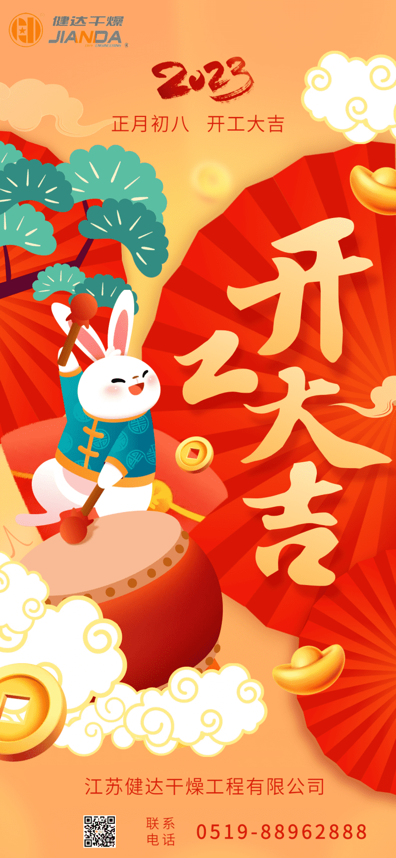 開工大吉,萬事可期。愿健達干燥在新的一年能夠大展鴻圖,砥礪前行,締造2023年滿堂紅!也祝愿公司各位同事:新年快樂,萬事順?biāo)?