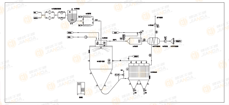注:水份蒸發(fā)量與物料的特性,含固量及熱風(fēng)進(jìn)出口溫度有關(guān)。用戶可根據(jù)當(dāng)?shù)啬茉辞闆r選定加熱方式,根據(jù)物料特性選擇收塵,除塵方式。